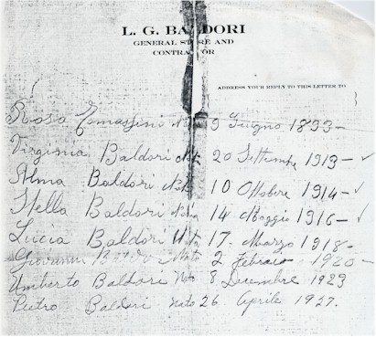 These appear to be family birthdays written on Luigi's letterhead, obviously long after his days in Kimball.  It appears as if Rosa's birthday is 1893, not 1895 as Virginia remembers.  Luigi died in 1928, but this note is in his handwriting so it must have been written some time between Pietro's birth in April of 1927, and Luigi's death in 1928.